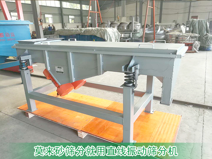 大漢機械生產的直線振動篩分機利用振動電機作為激振源,使莫來砂在篩網上被拋起,同時向前做直線運動,莫來砂在給料機上均勻地進入篩分機的進料口,通過多層的篩網產生數種規格的莫來砂,分別從各自的出口排出。以達到篩分目的。